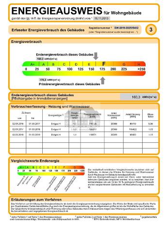 - Verbrauchskennwert insgesamt: ca. 160,3 kWh/(m²a)